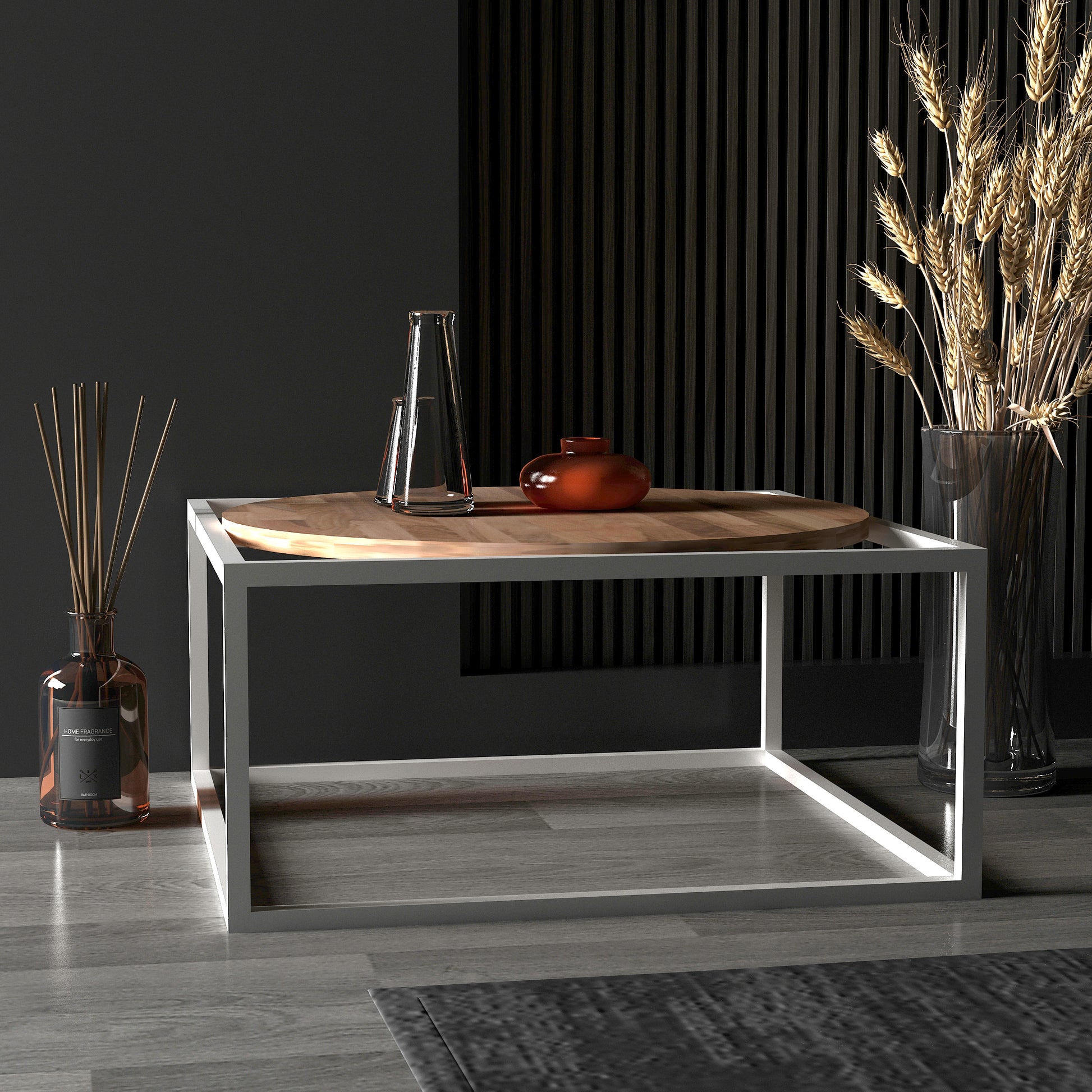 Temiz çizgileri ve minimalist tasarımıyla dikkat çeken orta sehpa, yaşam alanlarınıza modern bir dokunuş getirir. Metal ayaklar, zarif ve sağlam bir yapı sağlarken, yuvarlak masif tablası ise ortama şıklık ve aydınlık katıyor.