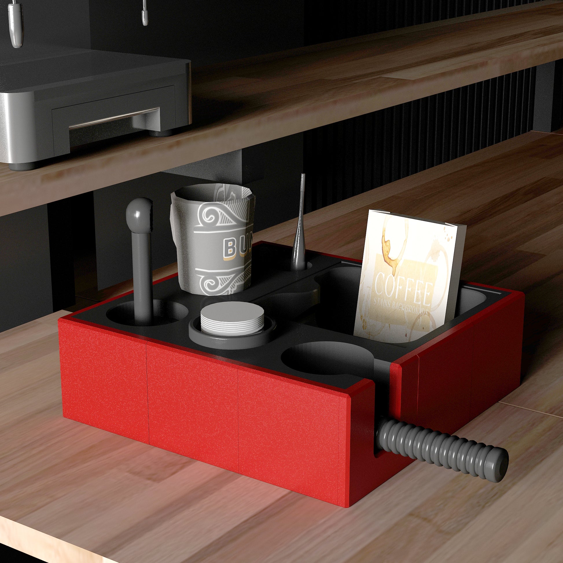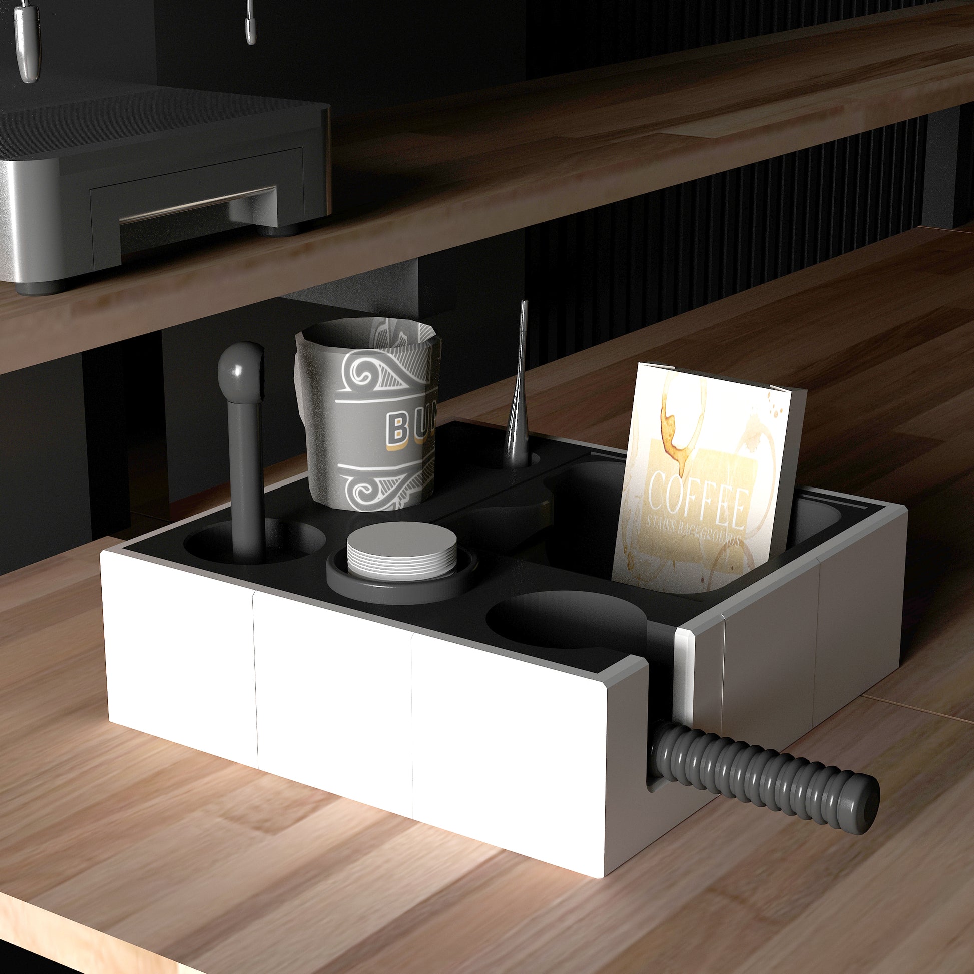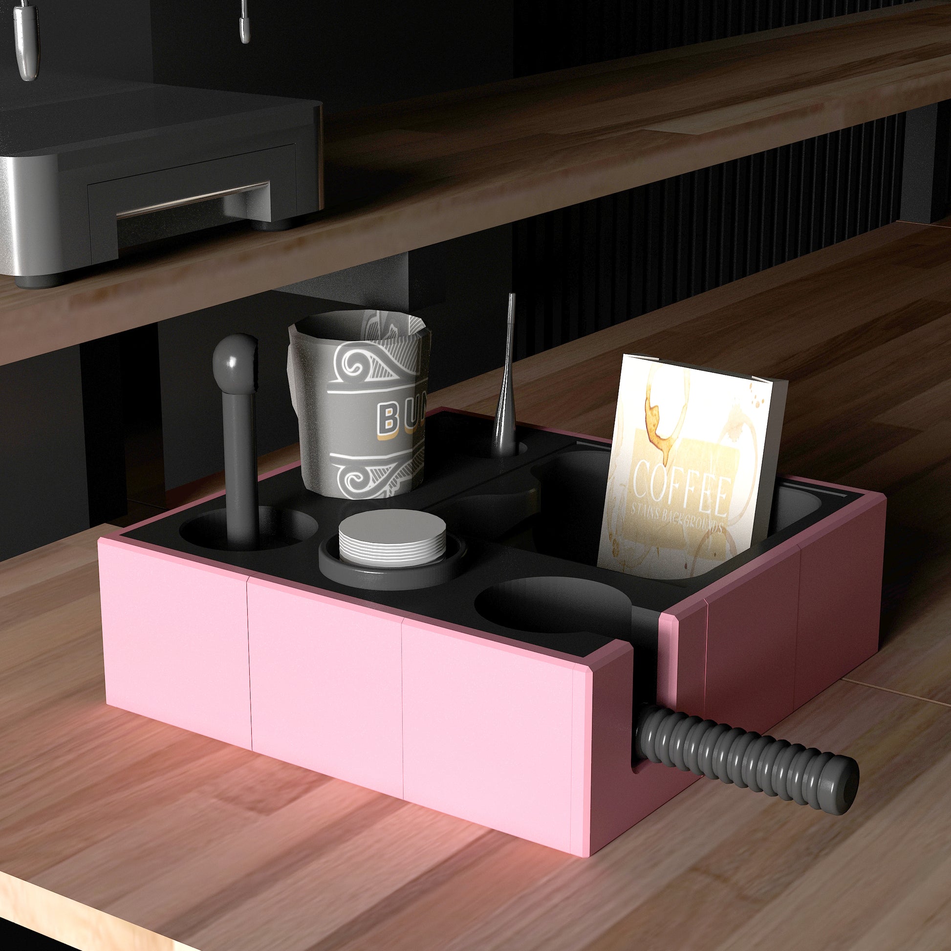 Esplan Espresso Aksesuar Düzenleyicisi, espresso makinenizin aksesuarlarını mükemmel bir şekilde düzenlemek için özel olarak tasarlanmıştır. Kahve köşelerinizi hem düzenler hem de şık bir görünüm kazandırır. İki farklı beden ve 10 renk alternatifi ile sizlere zengin seçenekler sunarak kahve deneyiminizi kişiselleştirir. Her detay düşünülerek tasarlandığı için, kahve tutkunları için ideal bir tamamlayıcıdır!