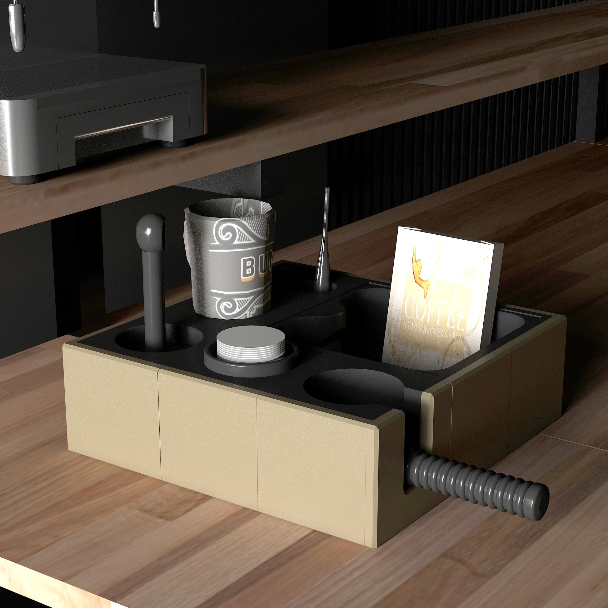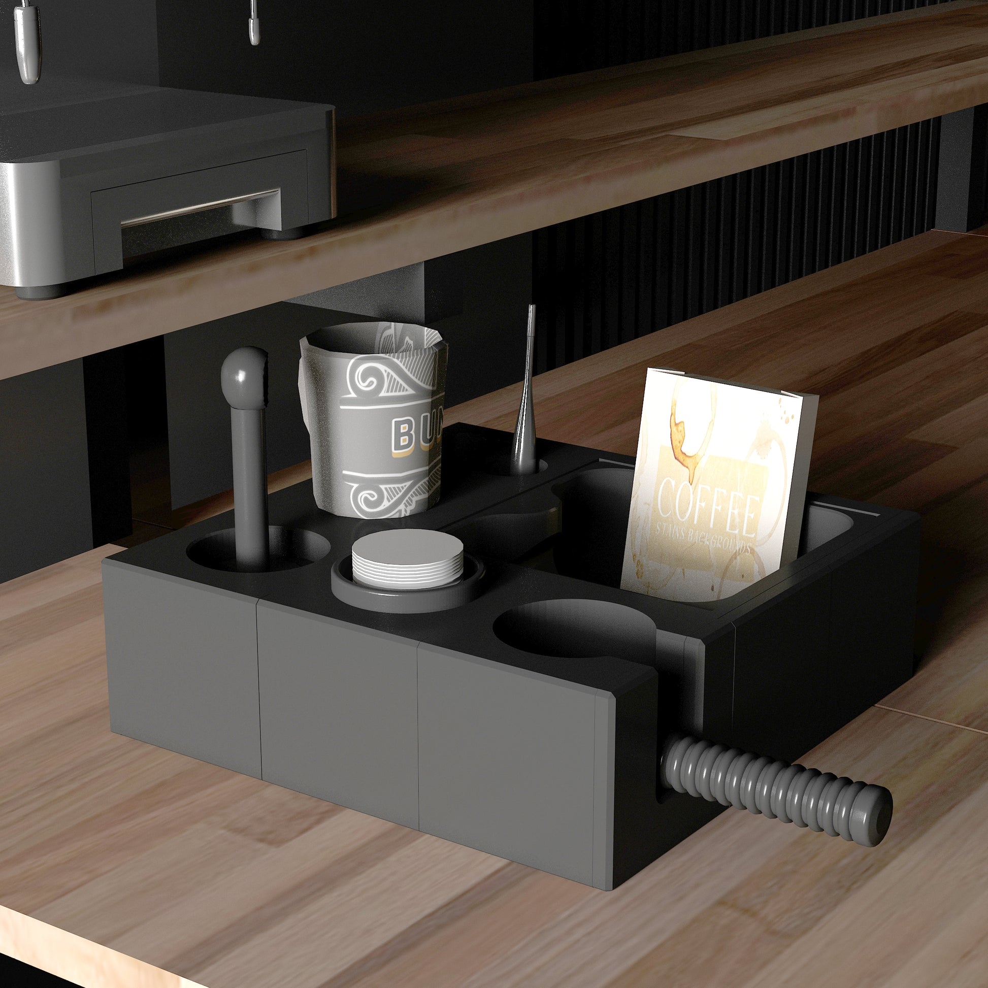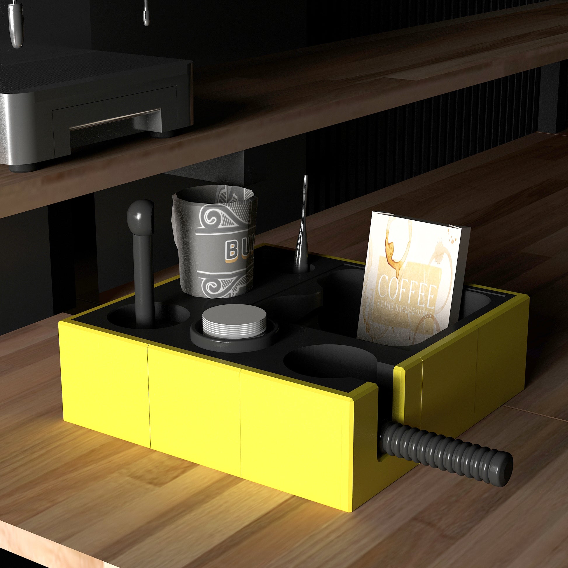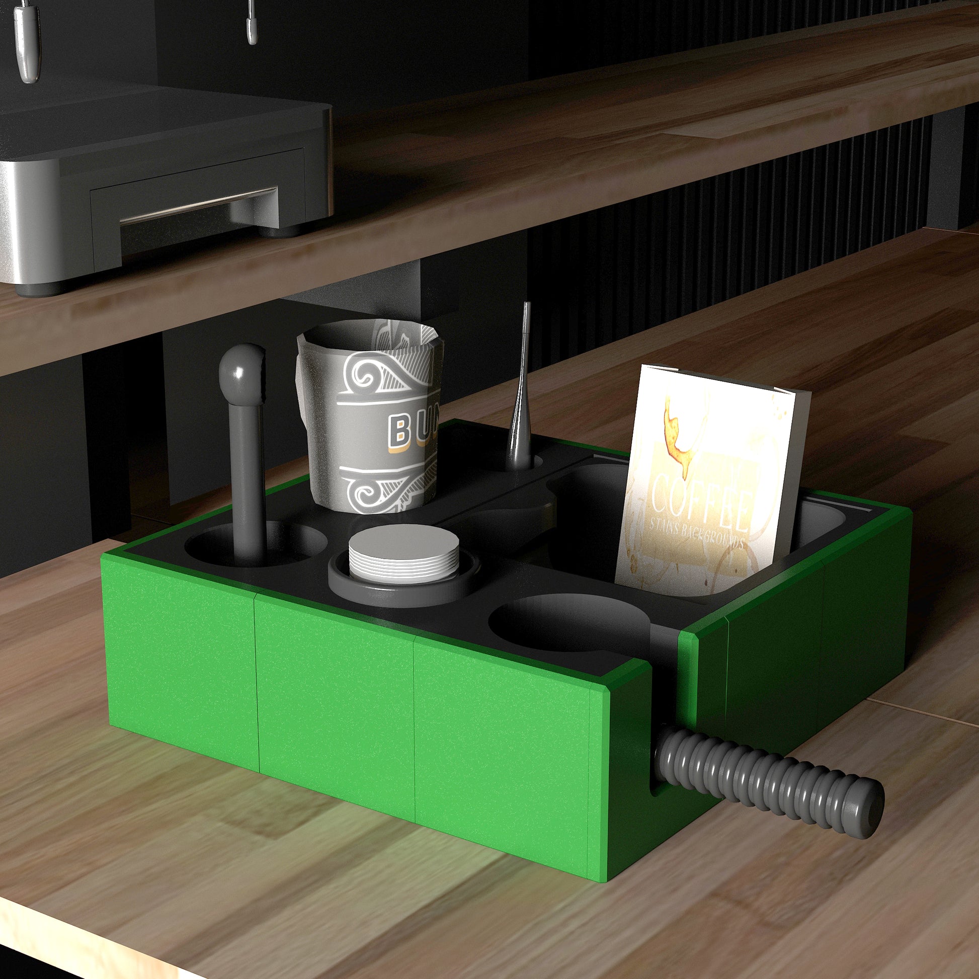Esplan Espresso Aksesuar Düzenleyicisi, espresso makinenizin aksesuarlarını mükemmel bir şekilde düzenlemek için özel olarak tasarlanmıştır. Kahve köşelerinizi hem düzenler hem de şık bir görünüm kazandırır. İki farklı beden ve 10 renk alternatifi ile sizlere zengin seçenekler sunarak kahve deneyiminizi kişiselleştirir. Her detay düşünülerek tasarlandığı için, kahve tutkunları için ideal bir tamamlayıcıdır!