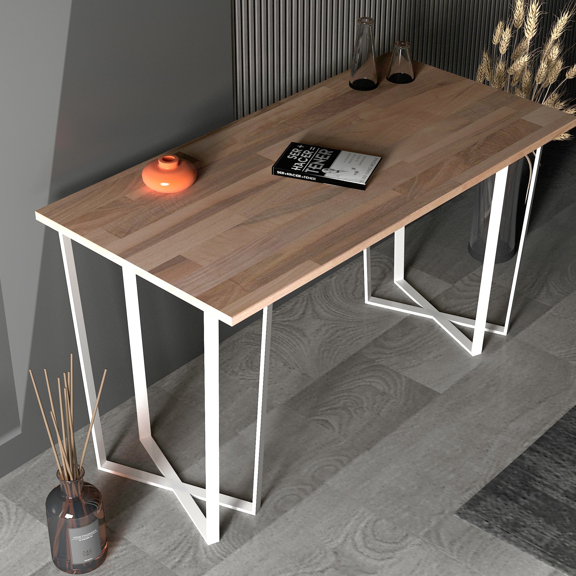 Fihlan Çalışma Masası, modern tasarımıyla dikkat çeken bir çalışma masasıdır. Metal ayakları ve 18mm Masif panel tablasıyla öne çıkar. Hem estetik görünümü hem de pratik kullanımıyla göz doldurur.