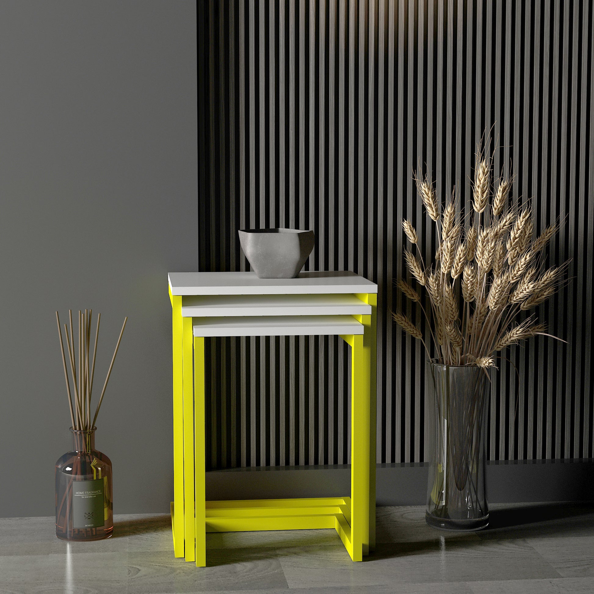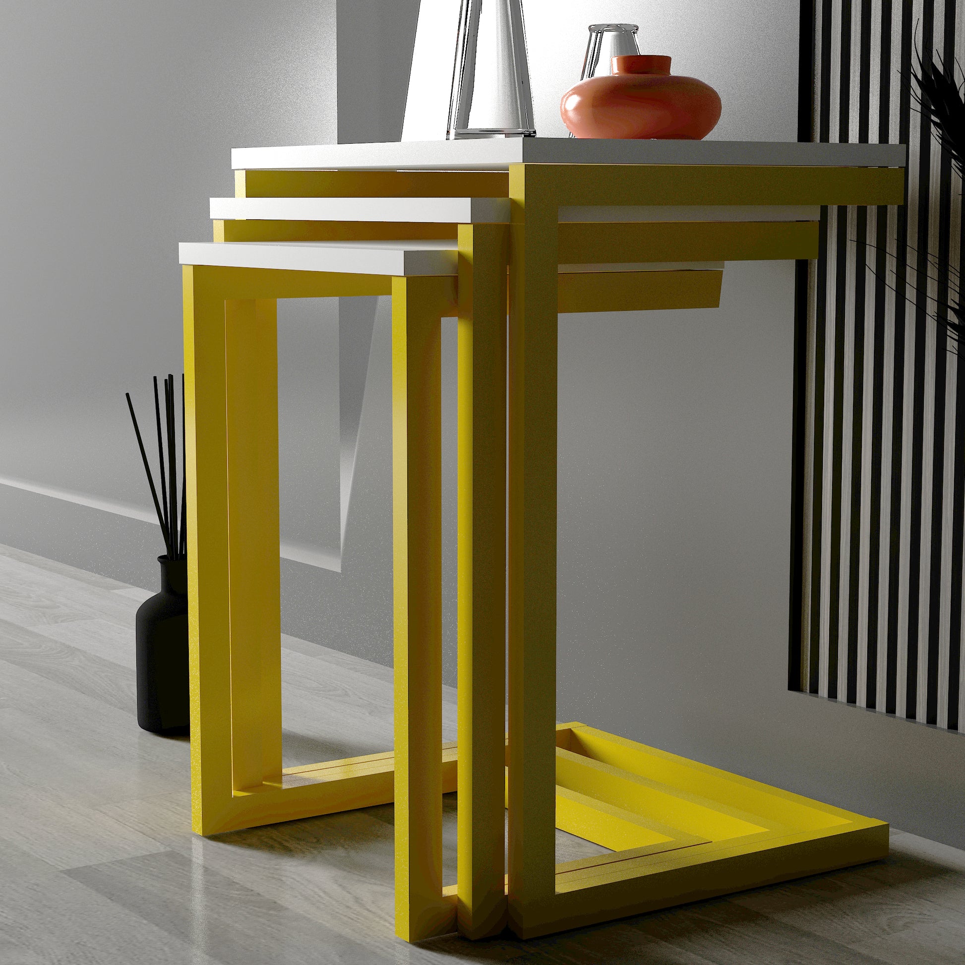 Madelan Zigon Sehpanın metal ayakları, modern bir estetik sunarken sağlam bir yapıya sahiptir. Basit ve şık tasarımı, her türlü dekorasyon tarzına kolaylıkla uyum sağlar. Size özel bir renk seçeneği tercih ederek yaşam alanlarınızı kişiselleştirin. 10 farklı renk alternatifiyle, evinizin veya ofisinizin dekorasyonuna uyum sağlayacak bir sehpa bulmanızı sağlıyoruz. Dilediğiniz renk seçeneklerimizle tarzınızı yansıtın. Madelan zigon sehpa, oturma odaları, salonlar veya misafir odaları gibi çeşitli iç mekanlarda mükemmel bir şekilde kullanılabilir. Zigon sehpa tasarımı, mekanın dinamik bir görünüm kazanmasını sağlar ve kullanıcıya işlevsel bir alan sunar.